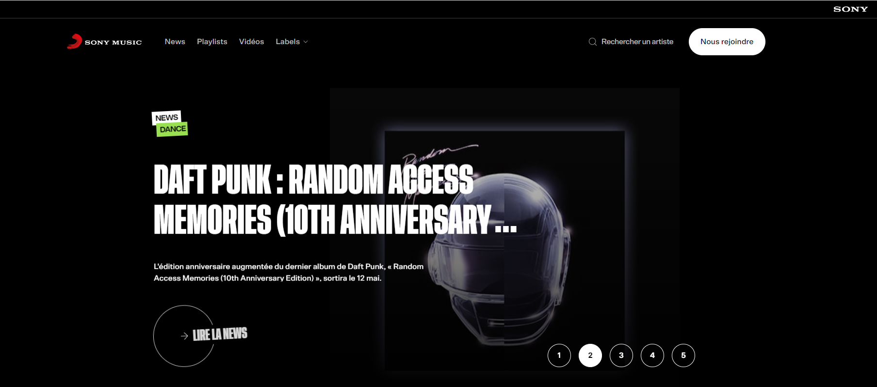 - Le portfolio qui défile en page d’accueil qui permet de voir les plus grandes stars faisant partie du Label Sony