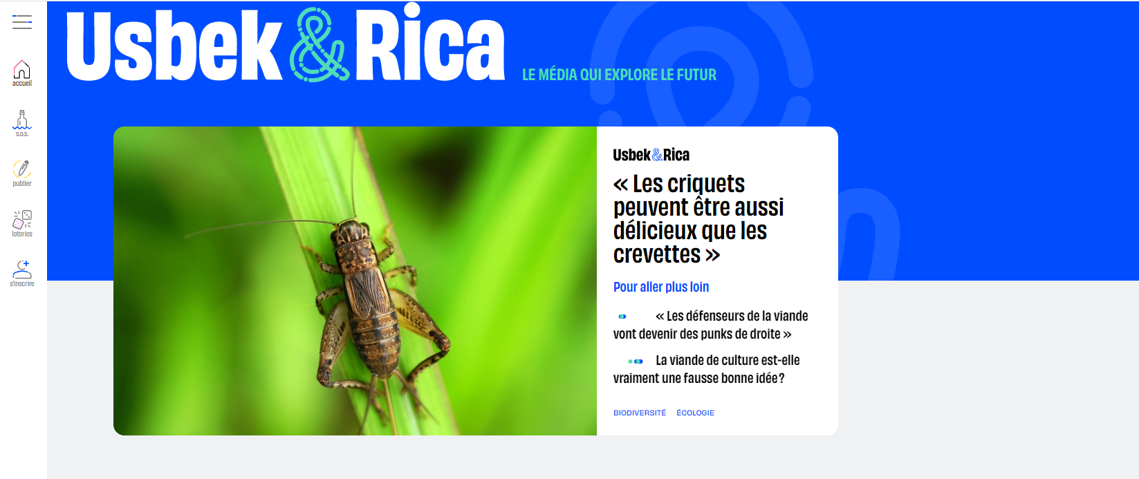 À l’origine magazine papier, Usbek & Rica, média dédié à la prospective et au futur, est en train de réussir sa mue digitale. La page d’accueil montre des articles hiérarchisés par taille (grande photo pour une longue interview par exemple). La lecture globale du site est aérée par des bandeaux dédiés à des contenus hors article, comme la proposition d’inscription à la newsletter.