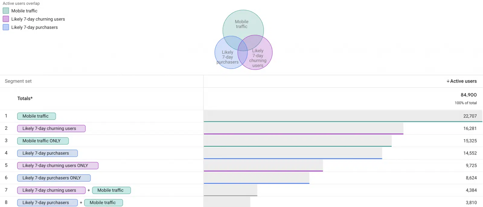 Après avoir mis en place des événements d’achat, Google commencera à recueillir les données nécessaires pour créer des audiences prédictives pour les acheteurs sur votre site, par exemple.