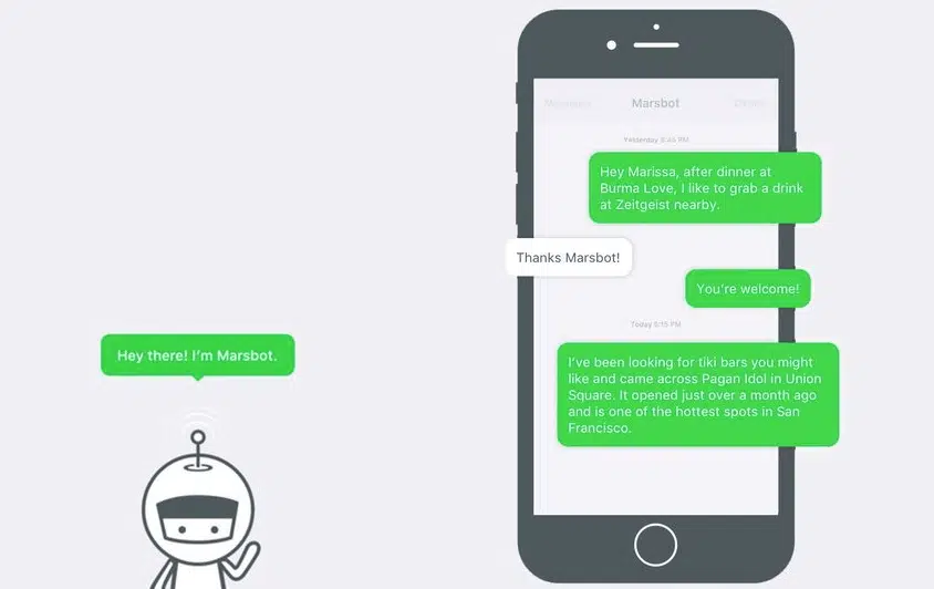 Marsbot de Foursquare, pour trouver un restaurant ou un bar