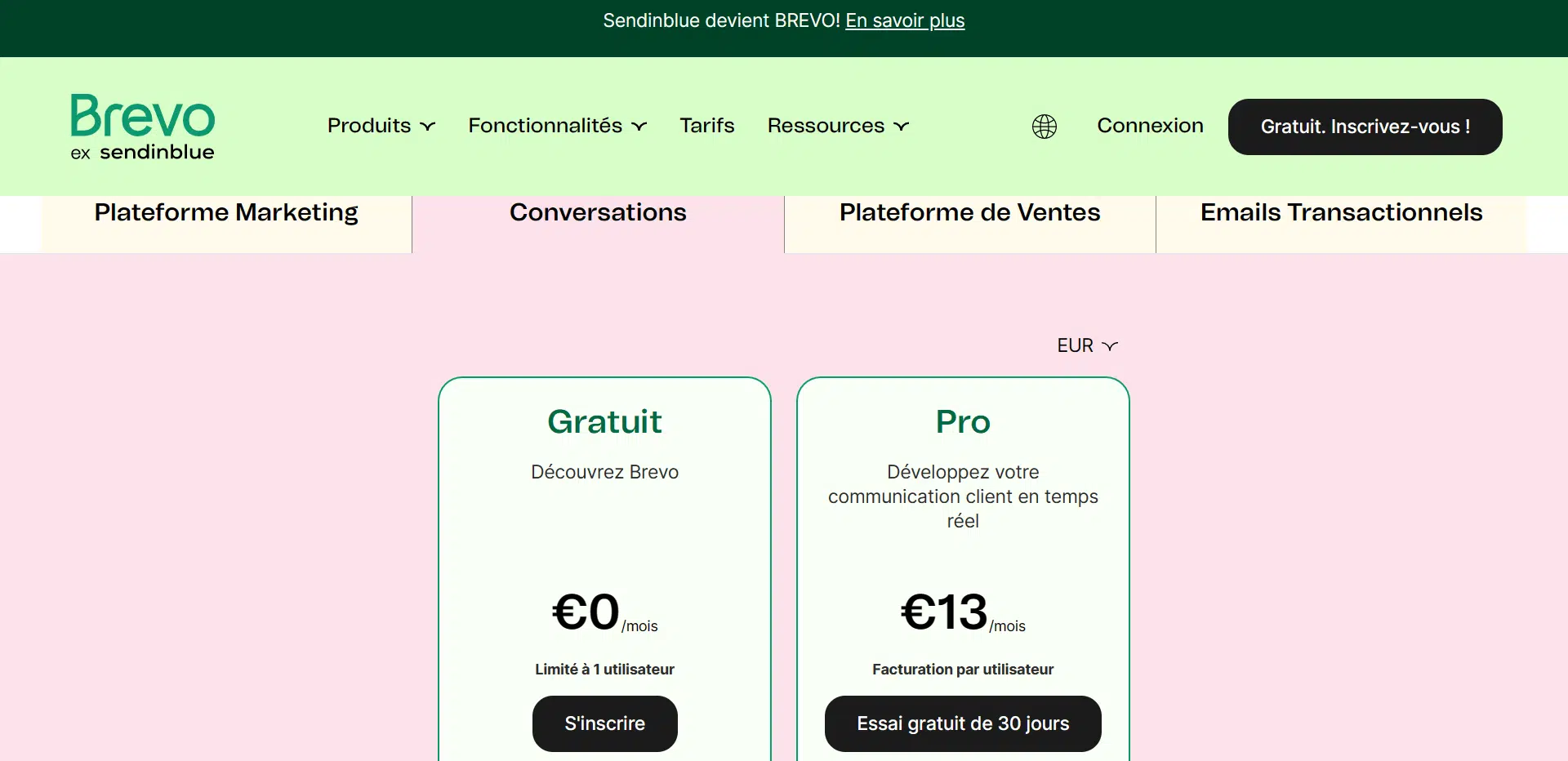 Le module de conversations de Brevo se découpe en 2 offres distinctes :